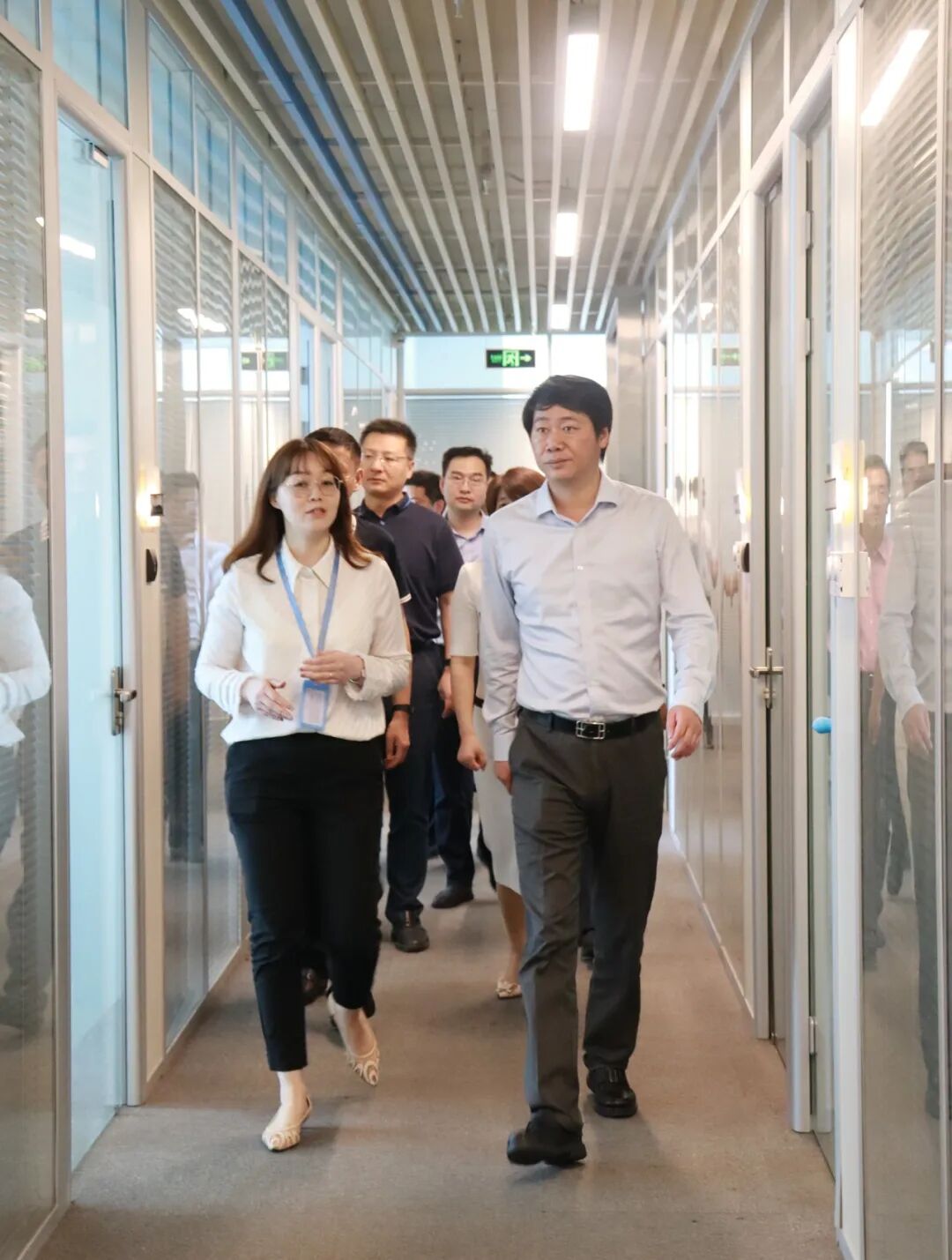 周区一行参观了空间内基础配套设施。公司创始人胡红艳女士就空间运营管理、入孵企业发展、项目投融资、科技成果转化等工作情况向周区一一做了汇报。